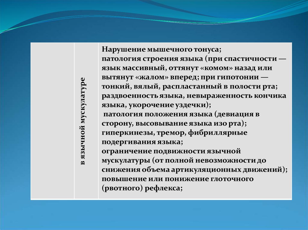 в язычной мускулатуреНарушение мышечного тонуса;