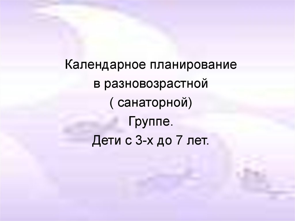 Календарное планирование в разновозрастной (санаторной) группе. Дети с 3-х до 7 лет