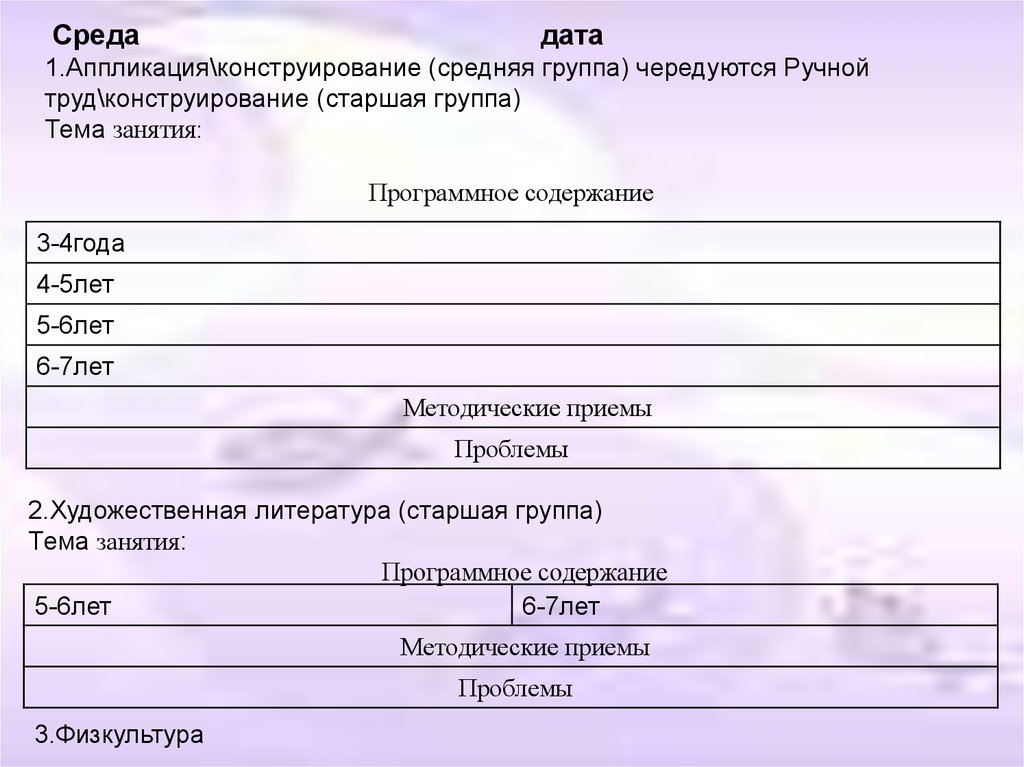 1.Аппликация\конструирование (средняя группа) чередуются Ручной