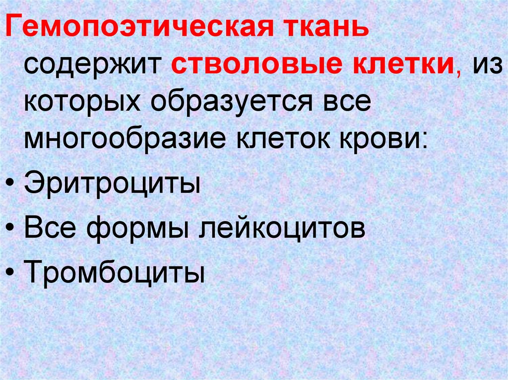 Гемопоэтическая тканьсодержит стволовые клетки, из