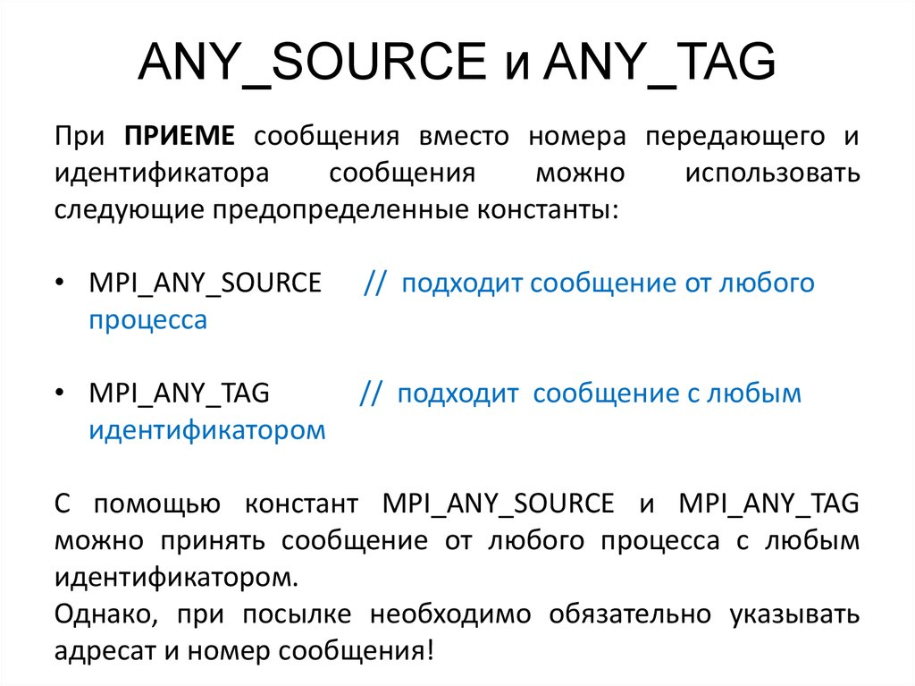 MPI_Recv) или принимаемых (вызов после MPI_Probe)