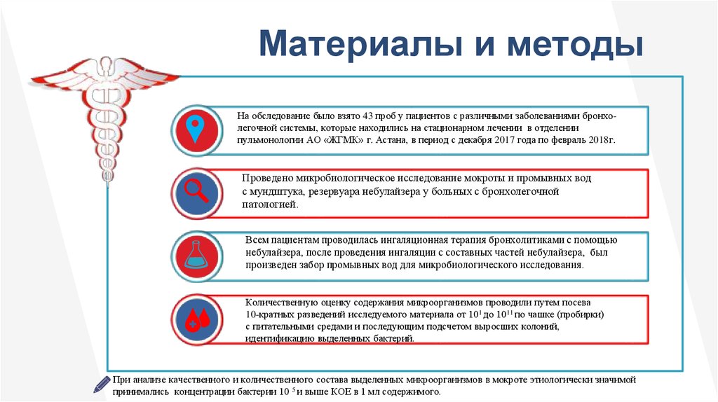 Материалы и методыНа обследование было взято 43 проб у пациентов с различными заболеваниями бронхолегочной системы, которые находились на стационарном лечении в отделении