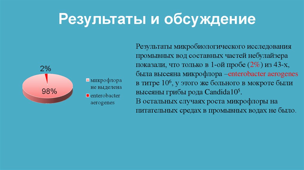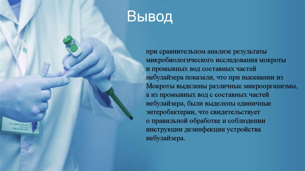Цель исследования:оценить микробиологический спектр мокроты и промывных вод составных частей небулайзера