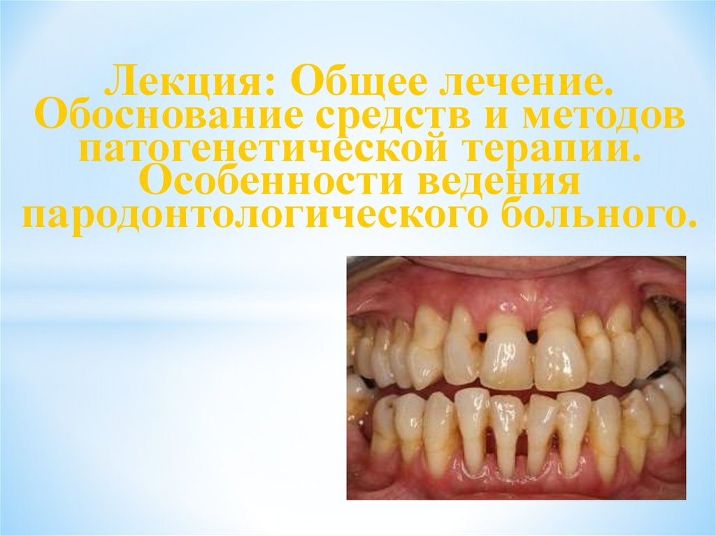 Общее лечение. Обоснование средств и методов патогенетической терапии. Особенности ведения пародонтологического больного