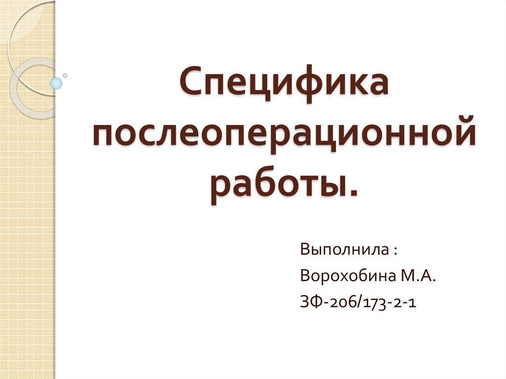Специфика послеоперационной работы