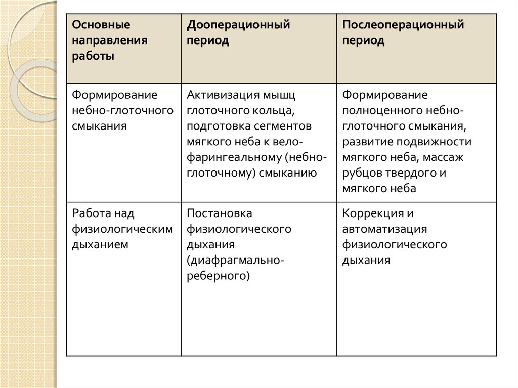 3. Основное значение дооперационного периода - развития базы для формирования правильной речи. Данный период очень важен в