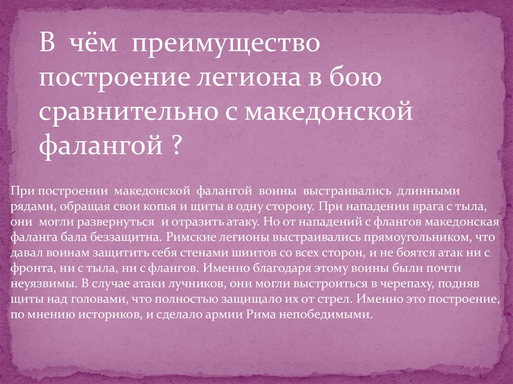 фаланга бала беззащитна. Римские легионы выстраивались прямоугольником, что