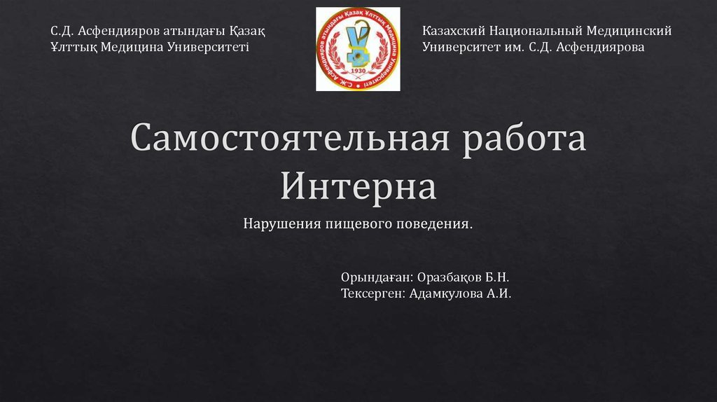 С.Д. Асфендияров атындағы ҚазақҰлттық Медицина Университеті
