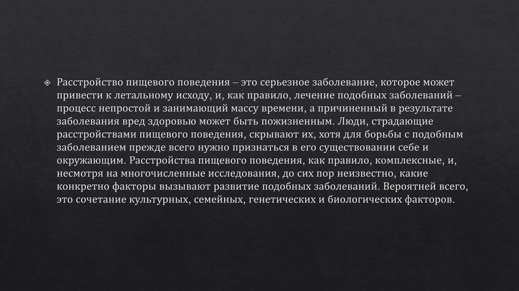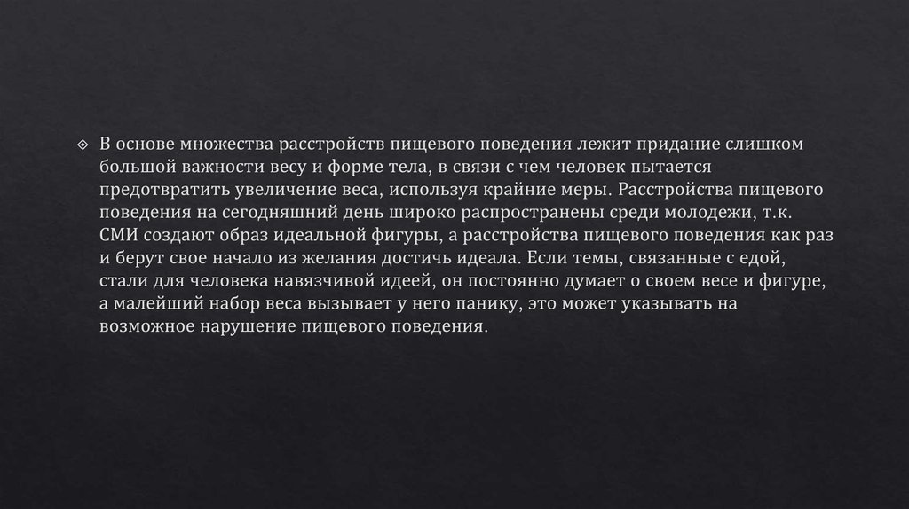 Самостоятельная работа интерна. Нарушения пищевого поведения