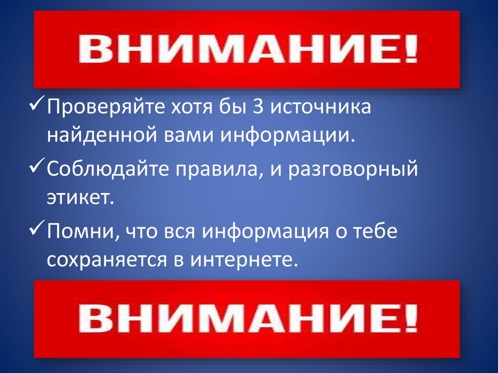Проверяйте хотя бы 3 источниканайденной вами информации.