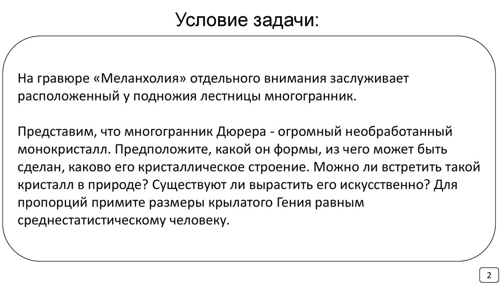 Условие задачи:На гравюре «Меланхолия» отдельного внимания заслуживает