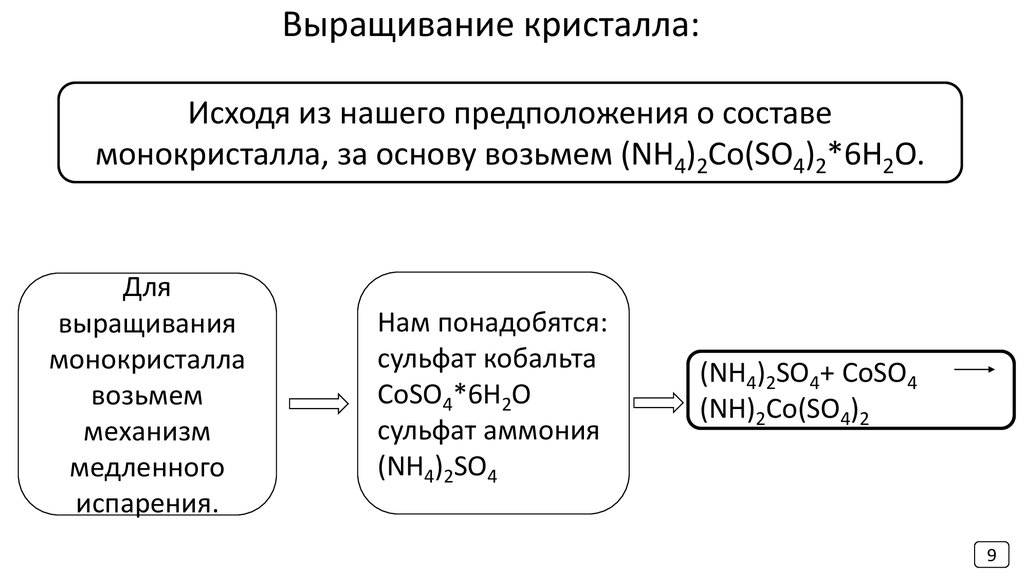 монокристалла, за основу возьмем (NH4)2Co(SO4)2*6H2O.
