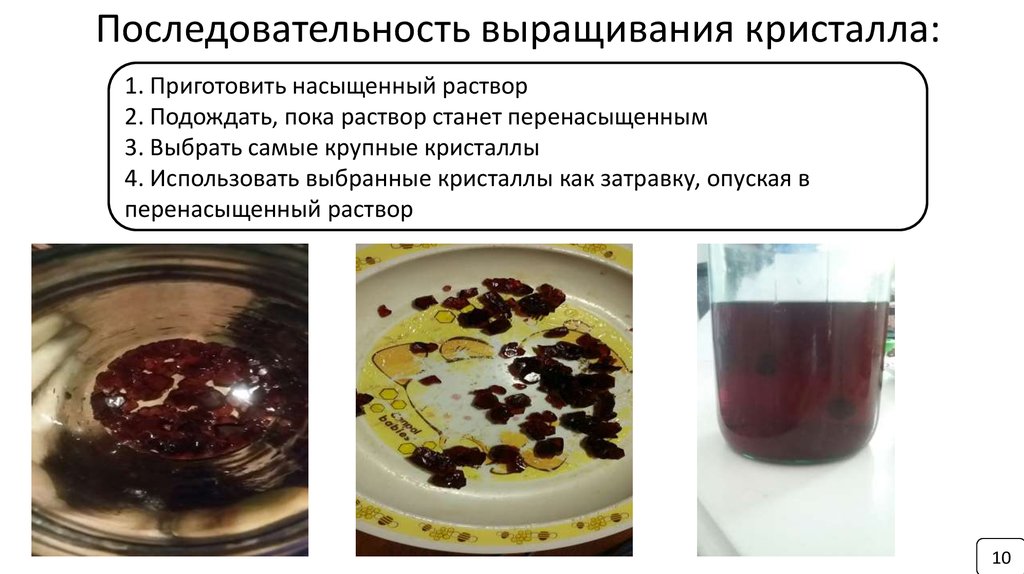 Последовательность выращивания кристалла:1. Приготовить насыщенный раствор
