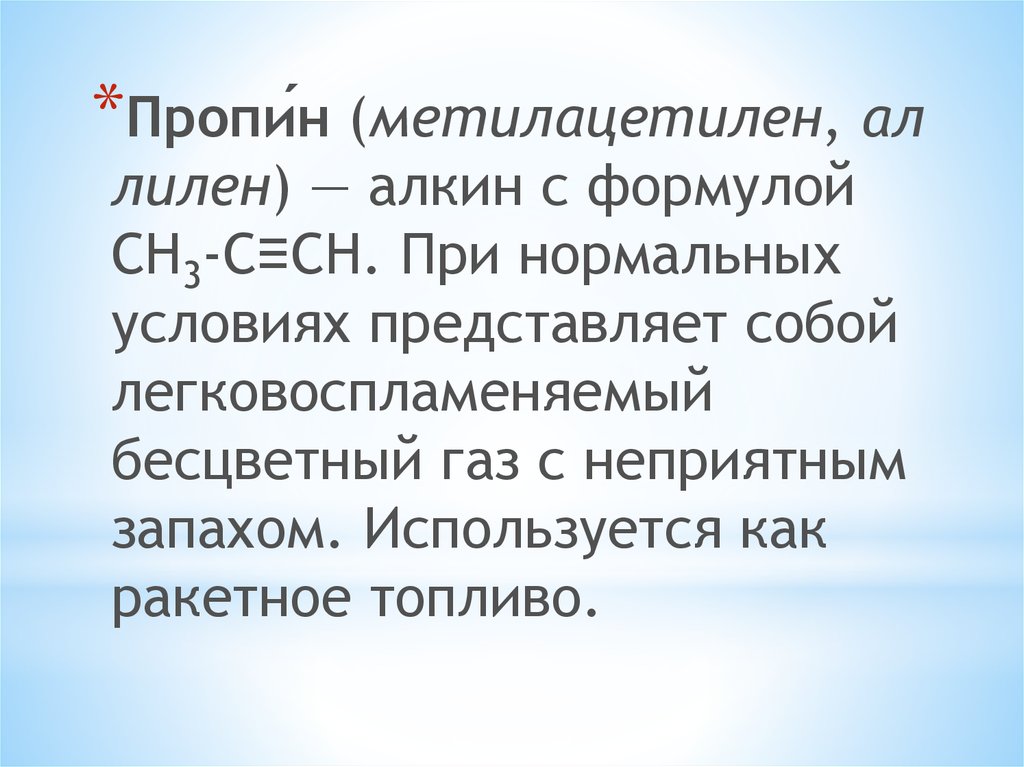*Пропи́н (метилацетилен, аллилен) — алкин с формулой