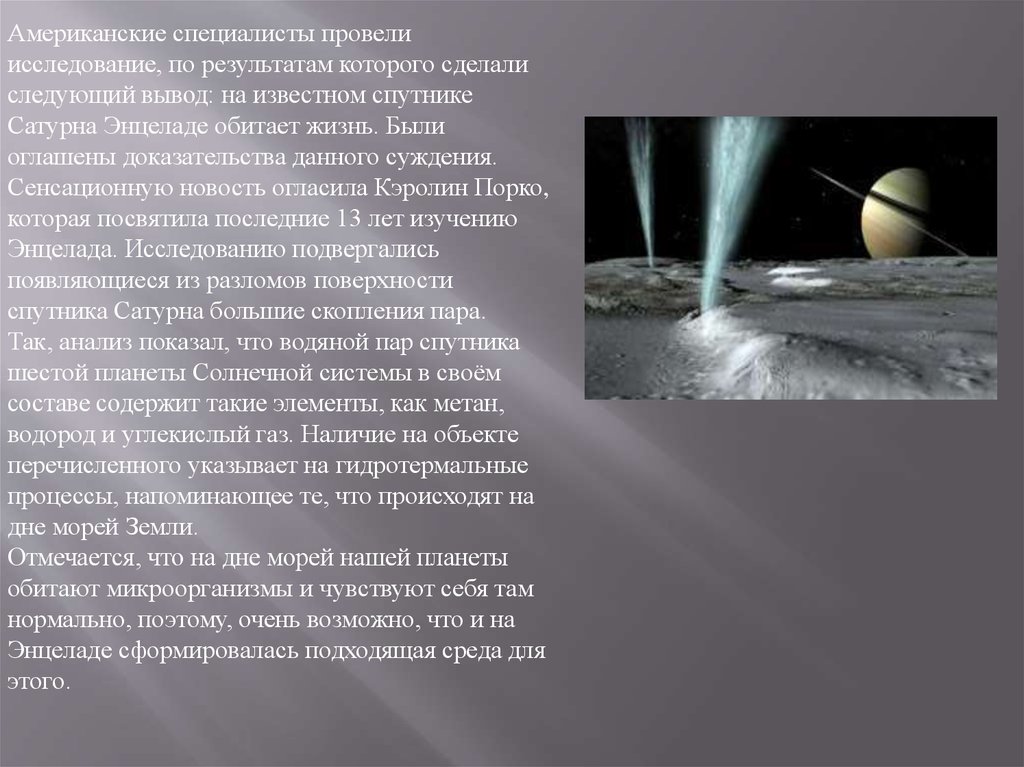 Сатурна Энцеладе обитает жизнь. Были
