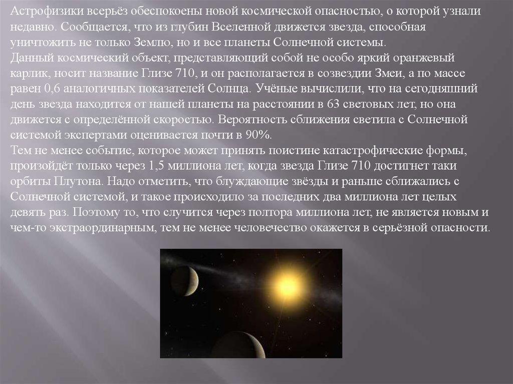 произойдёт только через 1,5 миллиона лет, когда звезда Глизе 710 достигнет таки