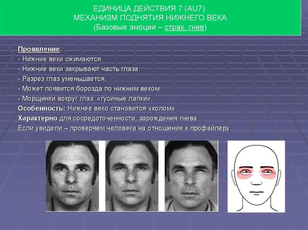 ЕДИНИЦА ДЕЙСТВИЯ 6 (AU6)МЕХАНИЗМ ПОДЪЕМА ЩЕКИ И УПЛОТНЕНИЯ НИЖНЕГО ВЕКА
