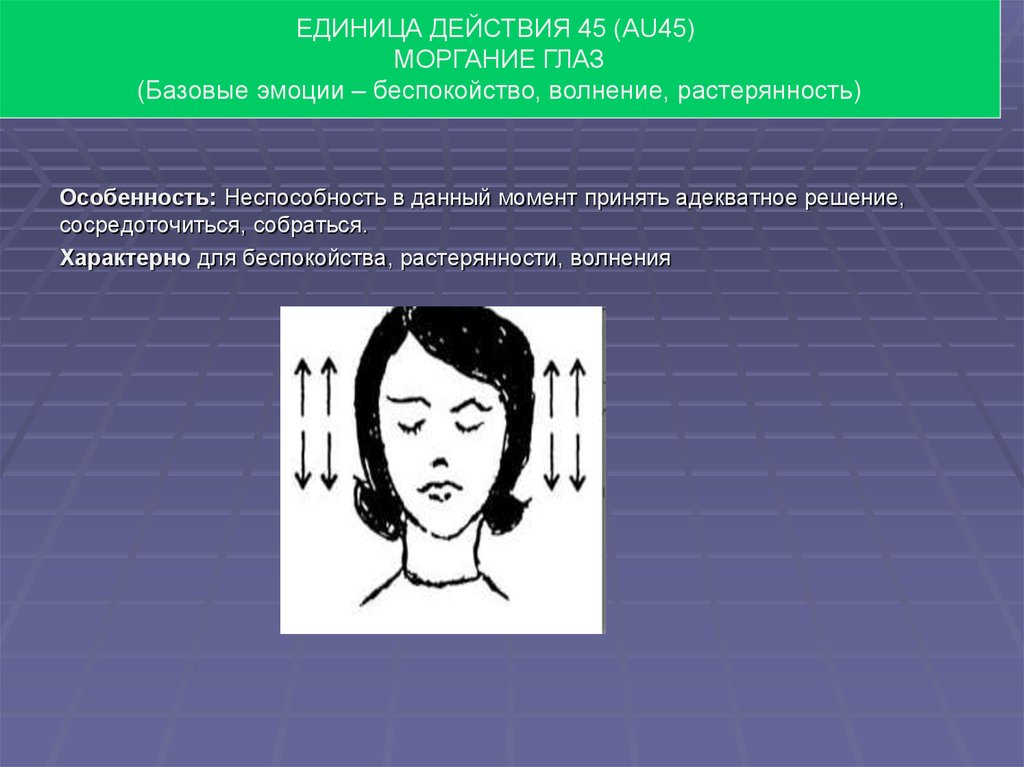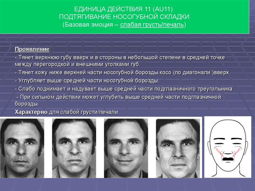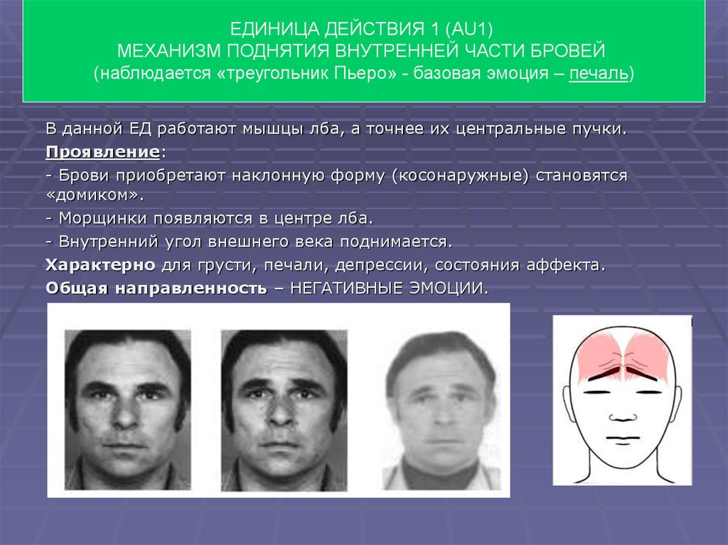ЕДИНИЦА ДЕЙСТВИЯ 1 (AU1)МЕХАНИЗМ ПОДНЯТИЯ ВНУТРЕННЕЙ ЧАСТИ БРОВЕЙ