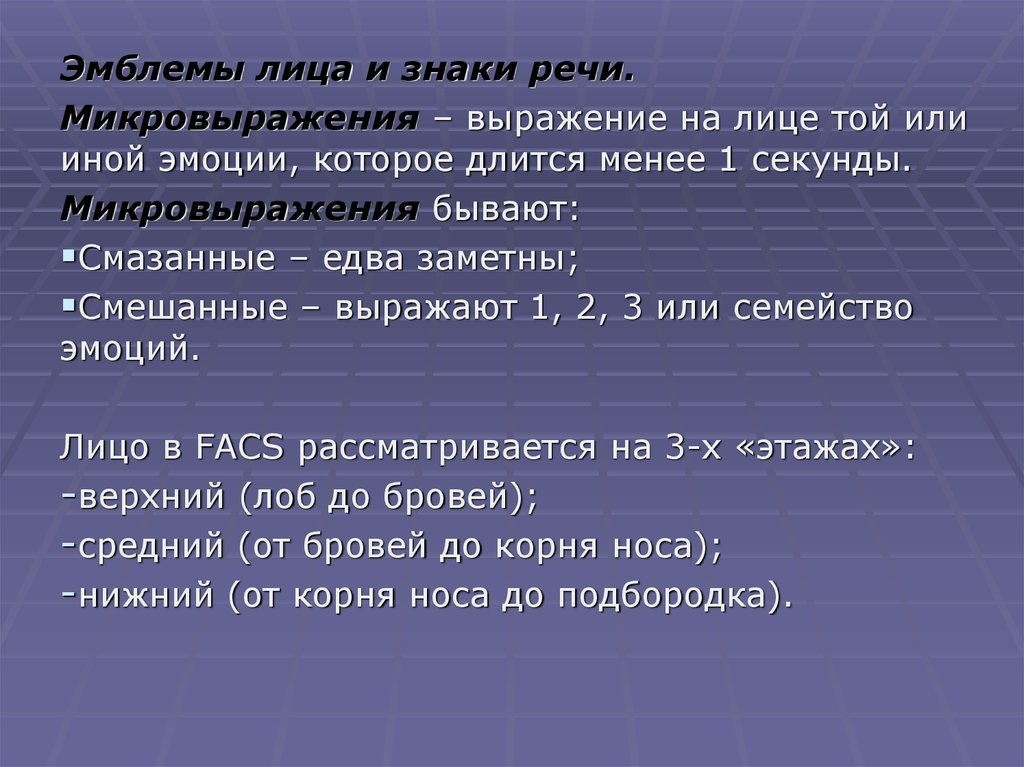 Эмблемы лица и знаки речи.Микровыражения – выражение на лице той или