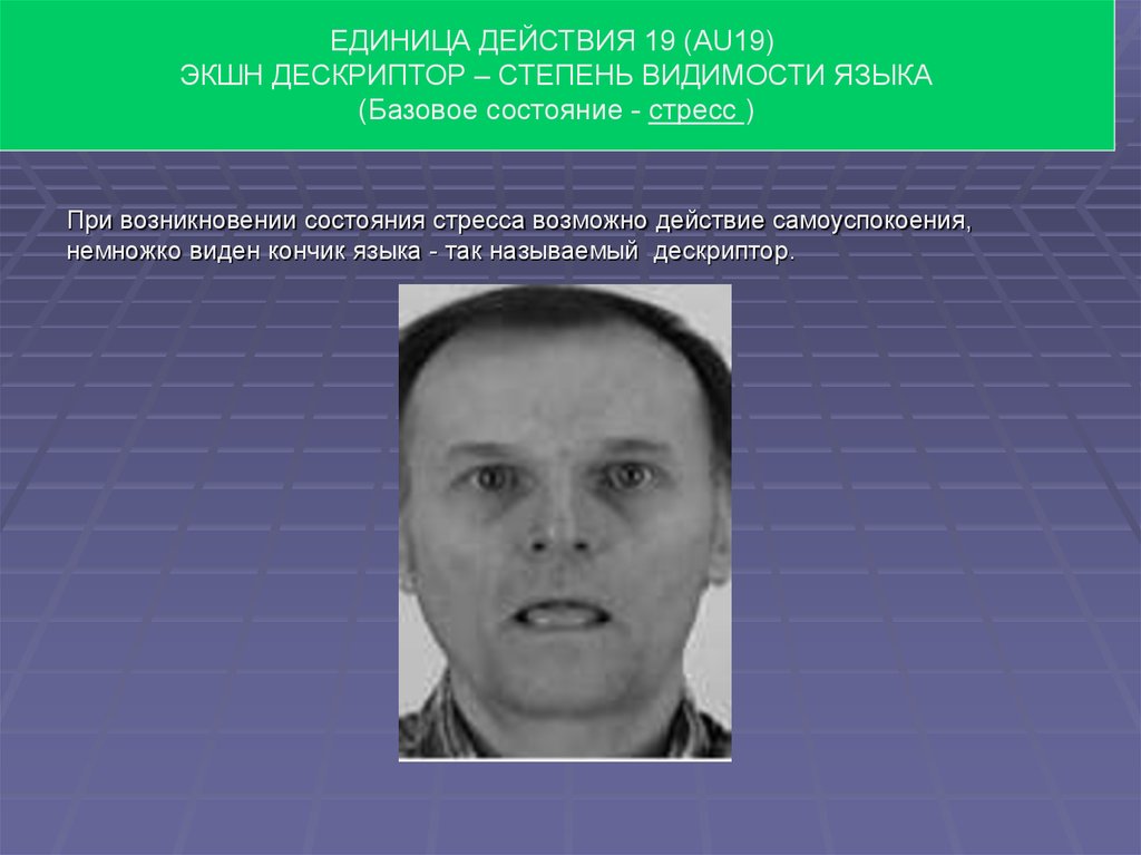 ЕДИНИЦА ДЕСКРИПТОР 19 (AD 19)ВЫСУНУТЫЙ ЯЗЫК (СТЕПЕНЬ ПОКАЗА ЯЗЫКА)