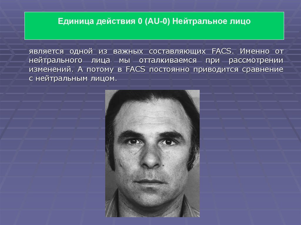 Единица действия 0 (AU-0) Нейтральное лицоявляется одной из важных составляющих FACS. Именно от