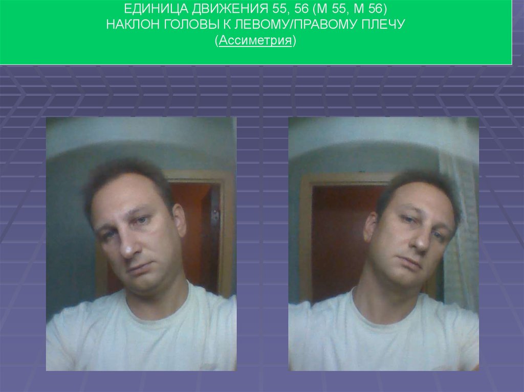 ЕДИНИЦА ДВИЖЕНИЯ 55, 56 (М 55, М 56)НАКЛОН ГОЛОВЫ К ЛЕВОМУ/ПРАВОМУ ПЛЕЧУ