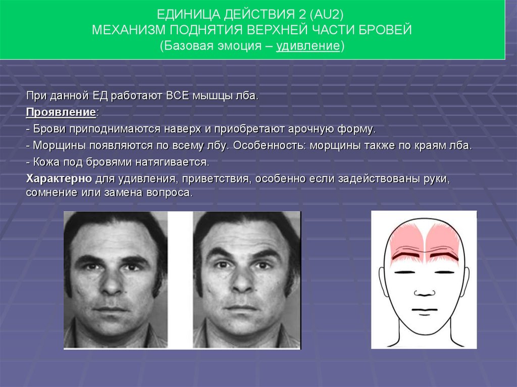 ЕДИНИЦА ДЕЙСТВИЯ 2 (AU2)МЕХАНИЗМ ПОДНЯТИЯ ВЕРХНЕЙ ЧАСТИ БРОВЕЙ