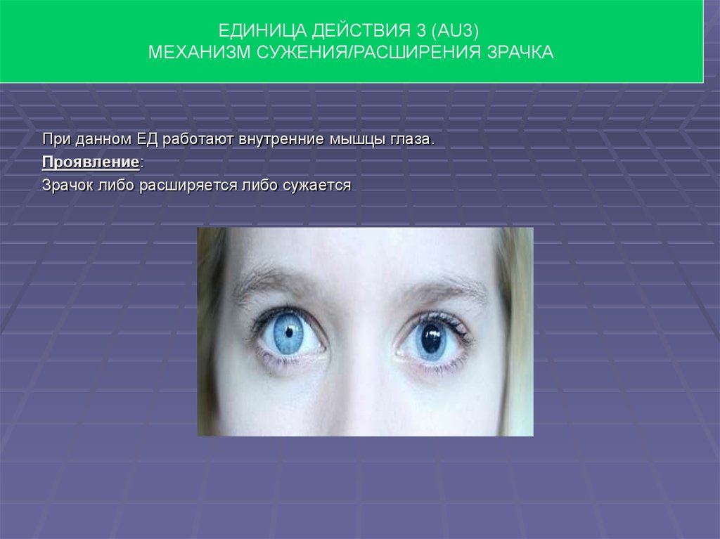 ЕДИНИЦА ДЕЙСТВИЯ 3 (AU3)МЕХАНИЗМ СУЖЕНИЯ/РАСШИРЕНИЯ ЗРАЧКА