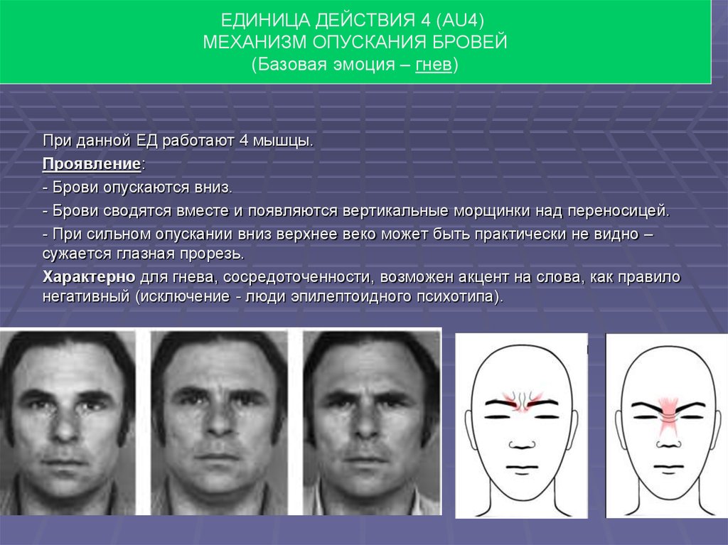 ЕДИНИЦА ДЕЙСТВИЯ 4 (AU4)МЕХАНИЗМ ОПУСКАНИЯ БРОВЕЙ