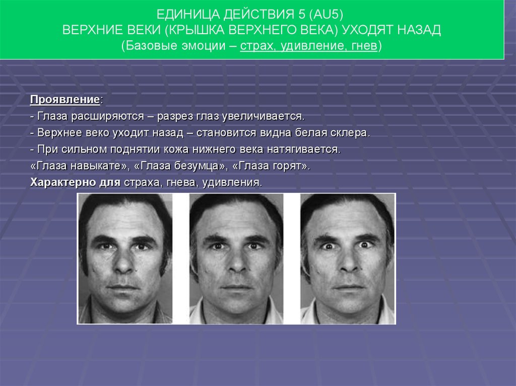 ЕДИНИЦА ДЕЙСТВИЯ 5 (AU5)ВЕРХНИЕ ВЕКИ (КРЫШКА ВЕРХНЕГО ВЕКА) УХОДЯТ НАЗАД
