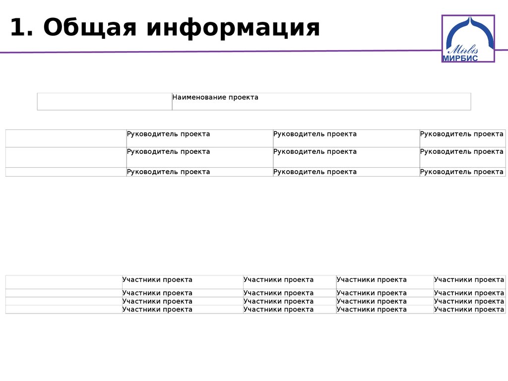 1. Общая информацияНаименование проекта