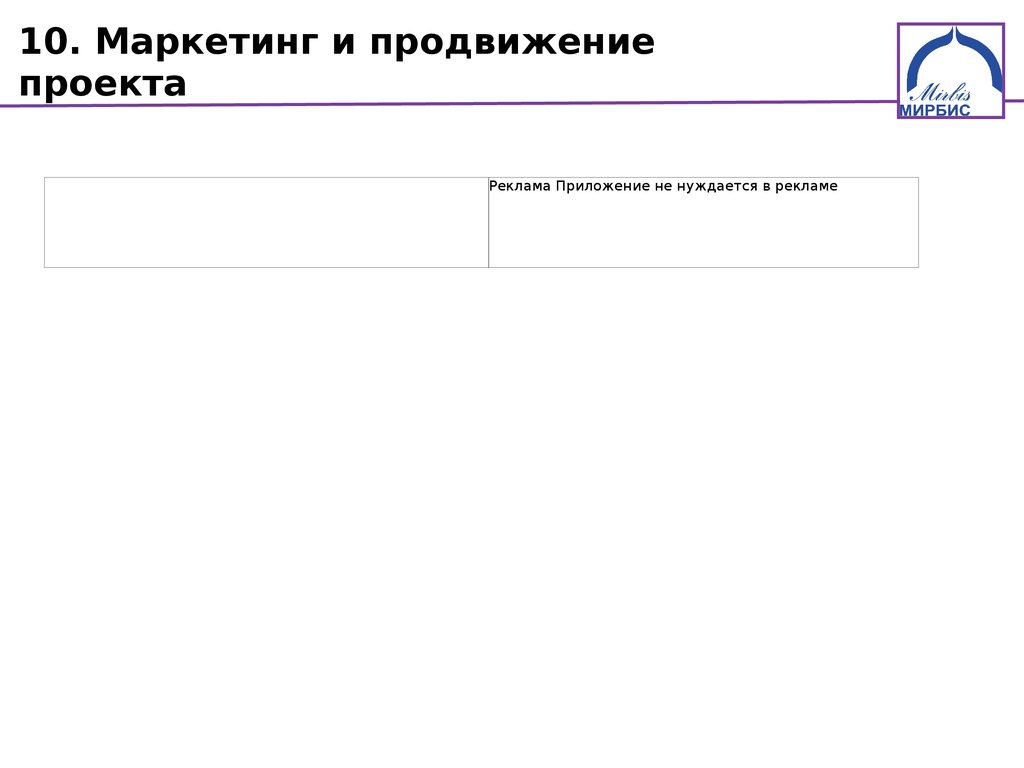 10. Маркетинг и продвижениепроекта