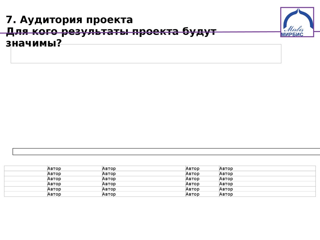7. Аудитория проектаДля кого результаты проекта будут