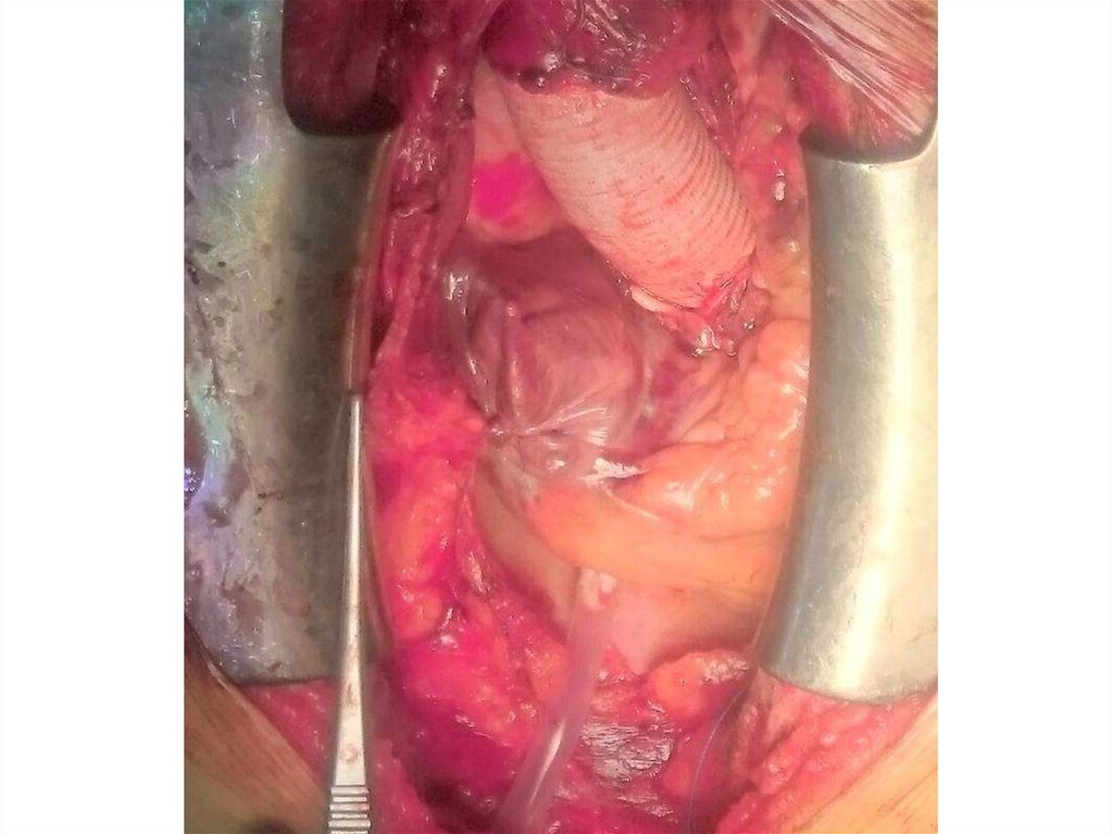 • В перикарде 150 мл темной крови.• Восходящая аорта расширена, расслоена.