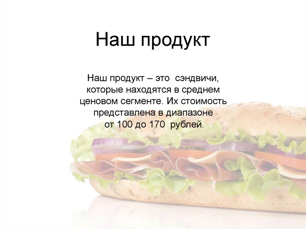 Наш продуктНаш продукт – это сэндвичи,