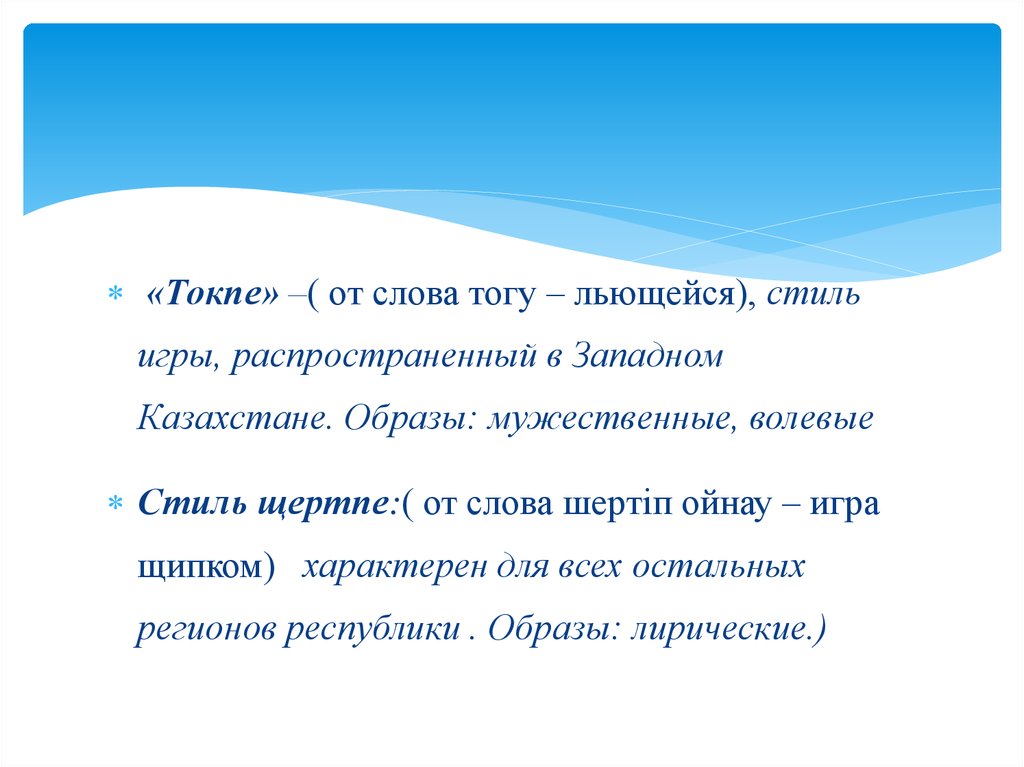 «Токпе» –( от слова тогу – льющейся), стильигры, распространенный в Западном
