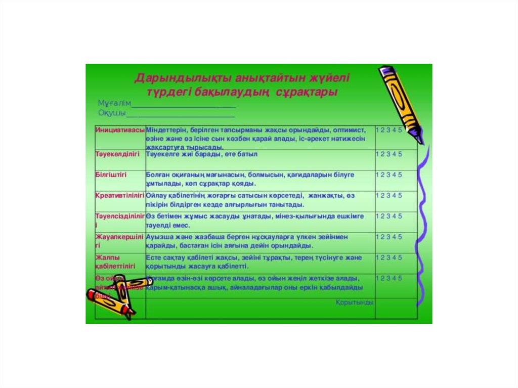 Дарынды оқушыларды анықтау жене колдау жұмыстары