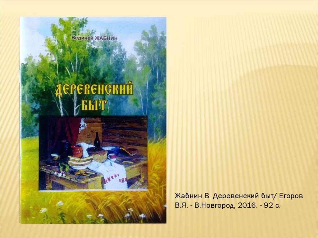 Жабнин В. Деревенский быт/ ЕгоровВ.Я. - В.Новгород, 2016. - 92 с.