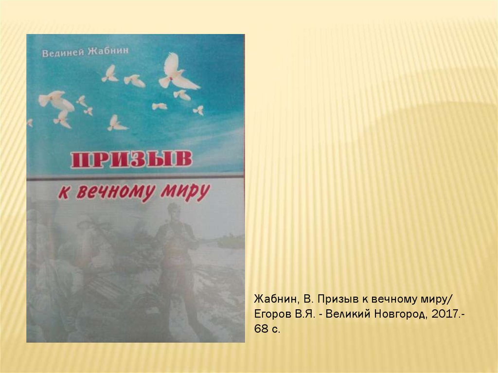 Жабнин, В. Призыв к вечному миру/Егоров В.Я. - Великий Новгород, 2017.68 с.