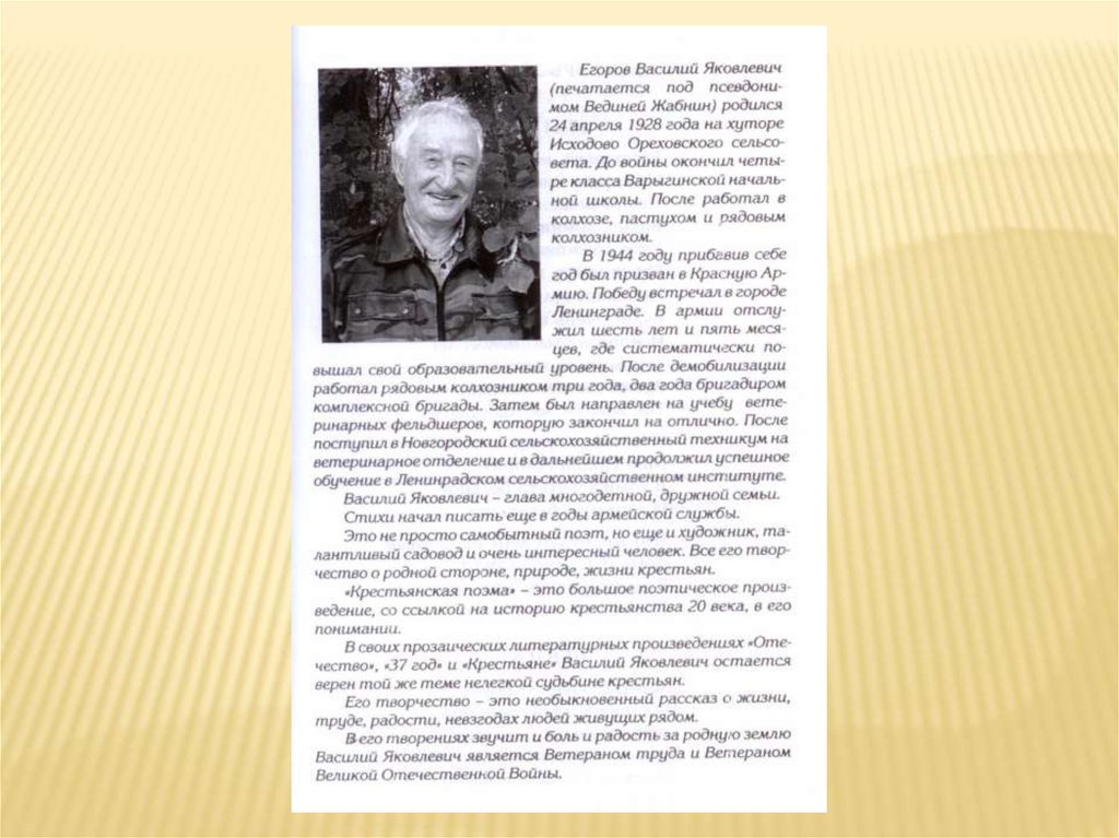 ВАСИЛИЙ ЯКОВЛЕВИЧ ЕГОРОВВетеран ВОВ, самобытный писатель
