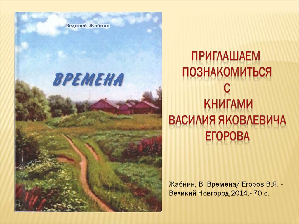 Жабнин, В. Времена/ Егоров В.Я. Великий Новгород,2014.- 70 с.5.
