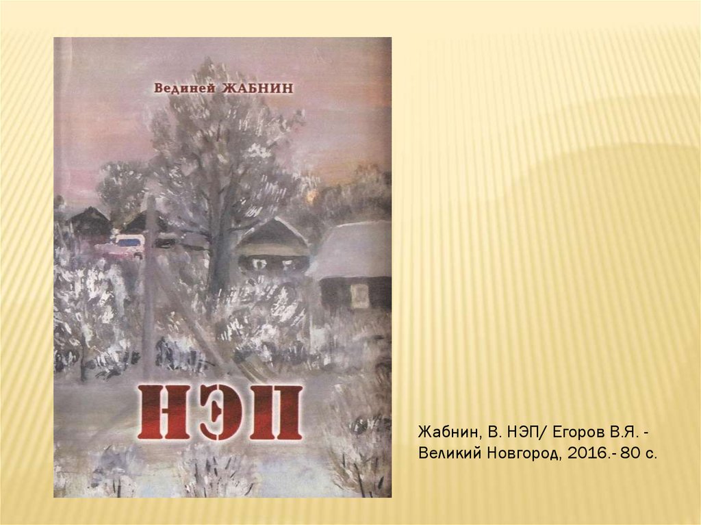Жабнин, В. НЭП/ Егоров В.Я. Великий Новгород, 2016.- 80 с.10.