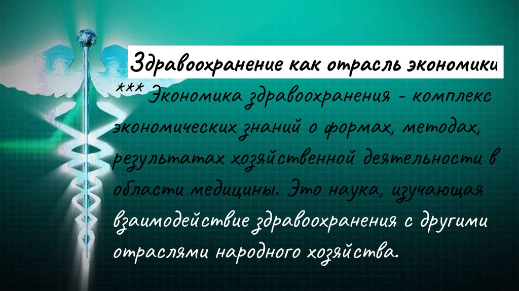 Здравоохранение как отрасль экономики*** Экономика здравоохранения - комплекс