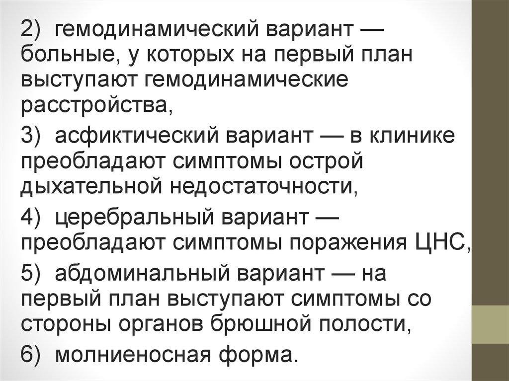 8. Разнообразные осложнения: гиповолемия, массивное кишечное
