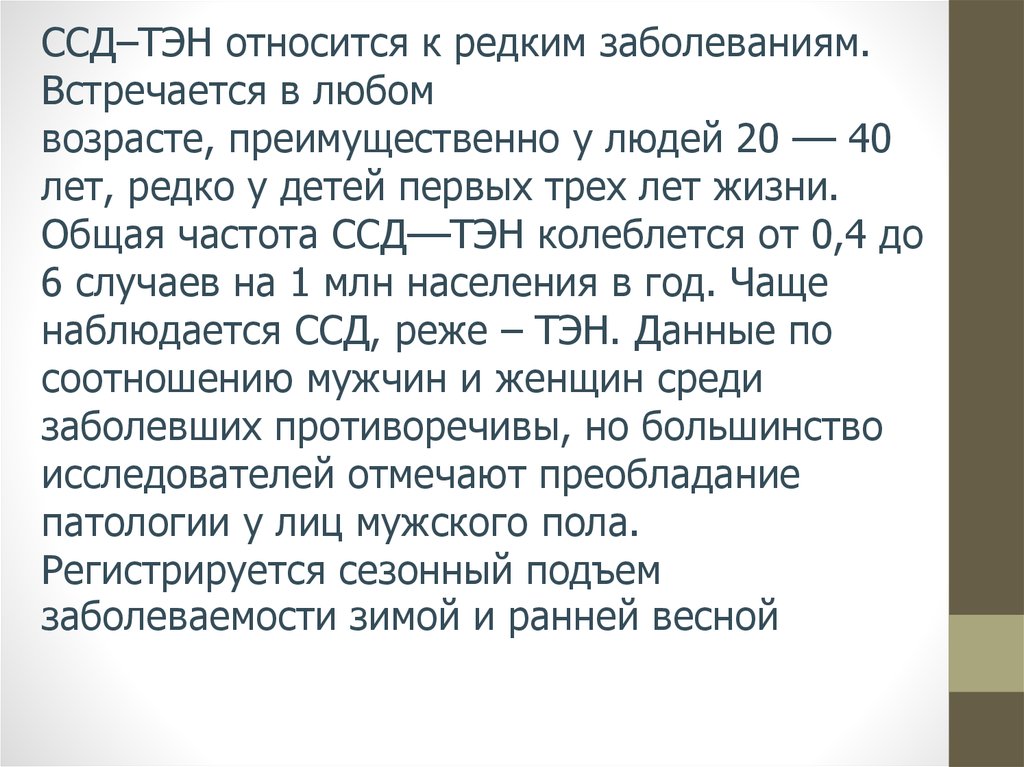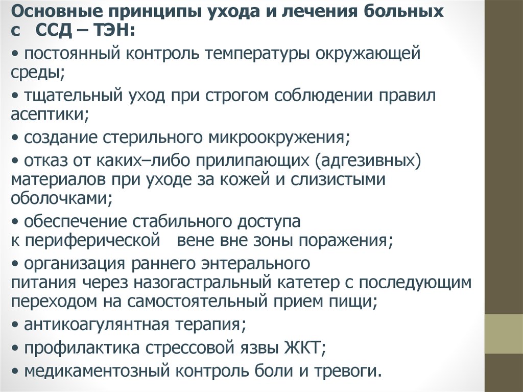Основные принципы ухода и лечения больныхс ССД – ТЭН: