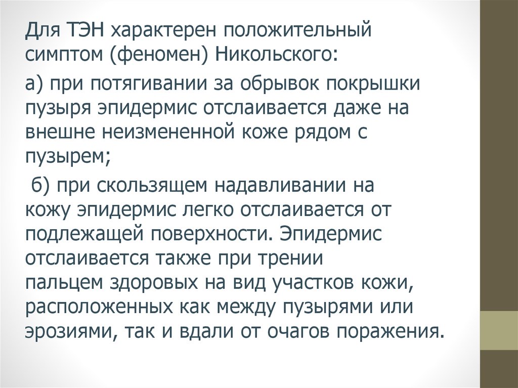 Для ТЭН характерен положительныйсимптом (феномен) Никольского: