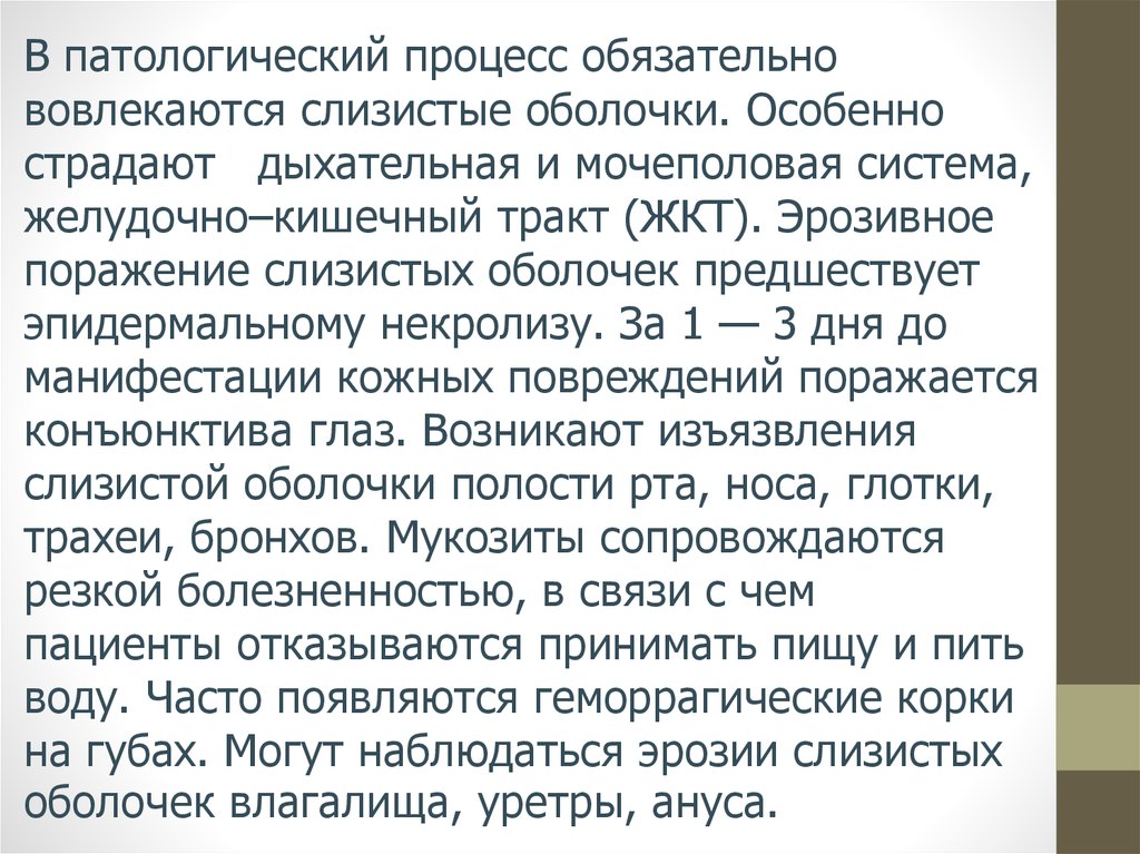 поражение слизистых оболочек предшествует