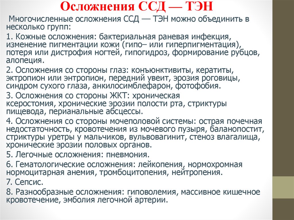 Осложнения ССД –– ТЭНМногочисленные осложнения ССД –– ТЭН можно объединить в