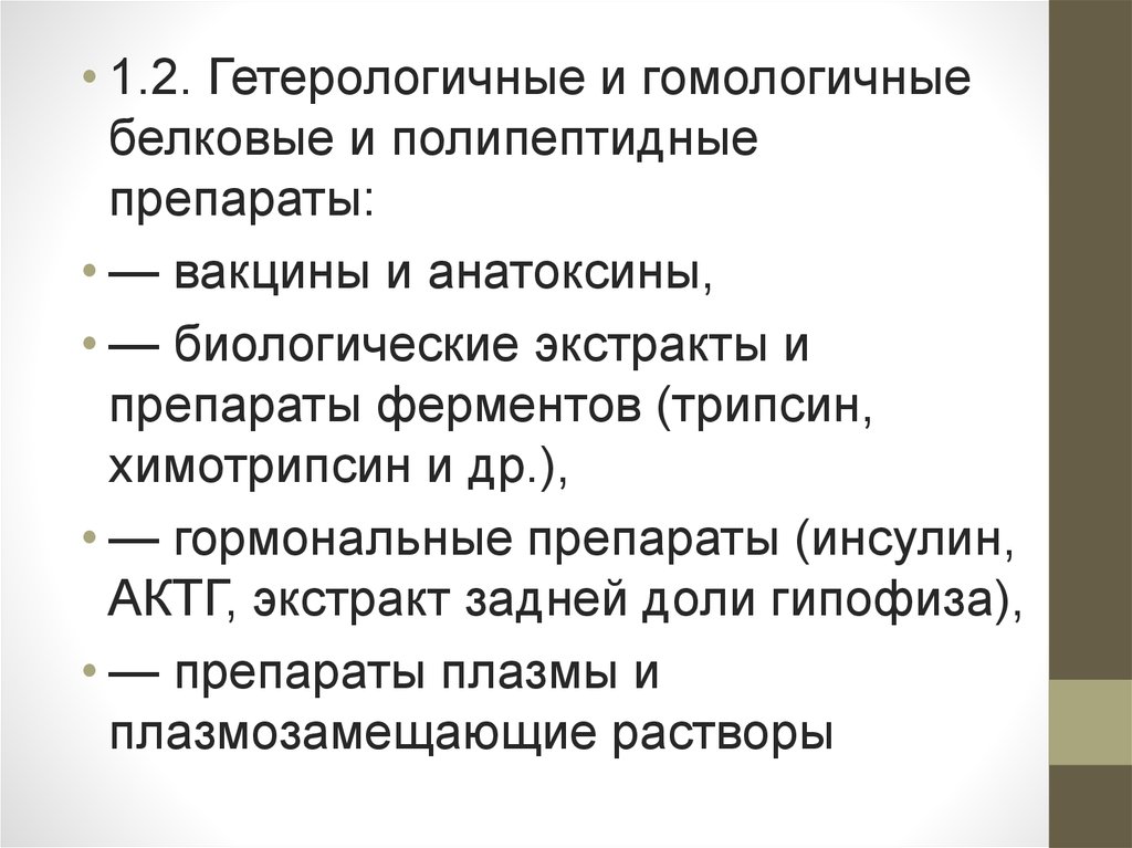 • 1.2. Гетерологичные и гомологичныебелковые и полипептидные
