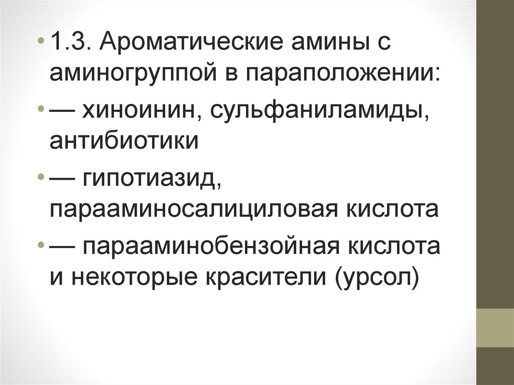 • 1.3. Ароматические амины саминогруппой в параположении:
